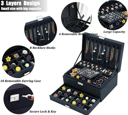 Jewelry Boxes for Women Black Velvet Jewelry Organizer with Lock,Teen Jewelry Organizers and Storage Earring and Necklace Holder Organizer Box Womens Jewelry Box for Necklaces Earrings Rings Bracelets